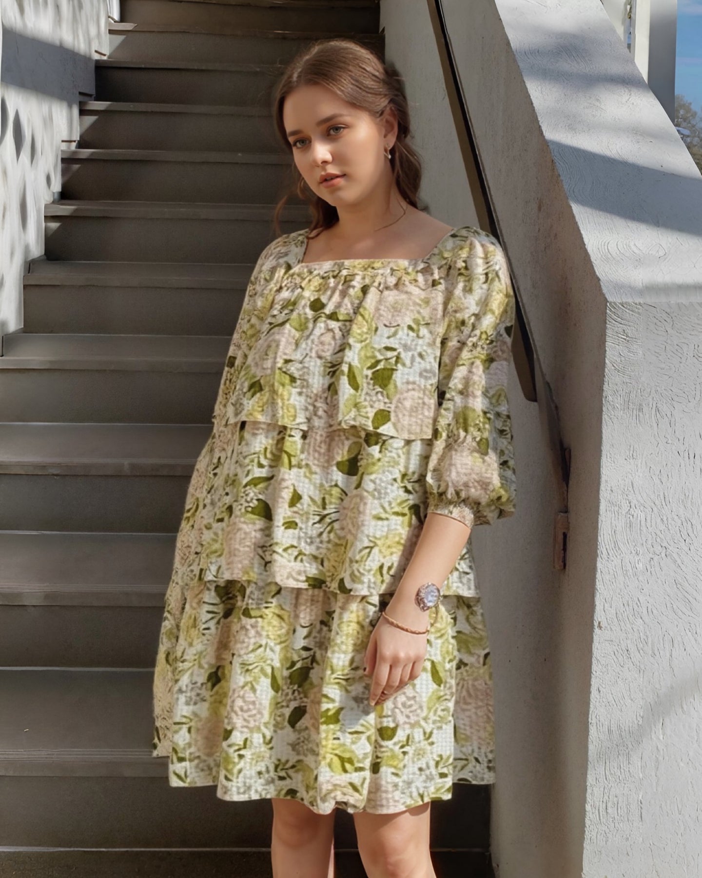 The Fabiola Dress is the embodiment of romance and effortless charm. Crafted in a soft, airy fabric with a delicate floral print, this tiered silhouette flows with every step, creating a graceful movement that feels both feminine and free. The square neckline frames the décolletage with subtle elegance, while the voluminous 3/4 puff sleeves add a touch of vintage-inspired drama. Designed with layered tiers, this dress offers a flattering shape that is as comfortable as it is stylish.