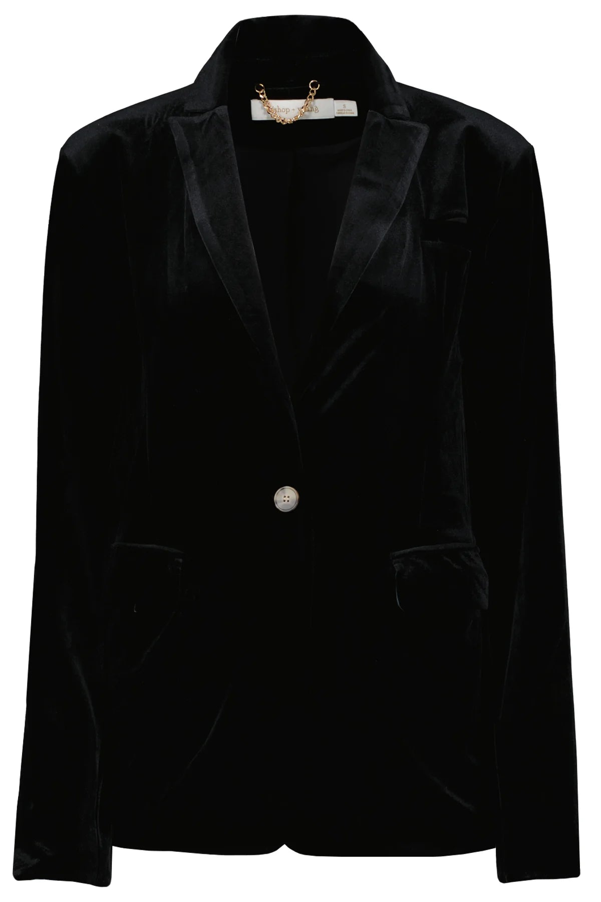 The Luxe Blazer is cut in a rich black velvet that catches the light beautifully and elevates anything you wear underneath. The elongated silhouette feels modern and confident, while the tailored lapel and single-button closure keep it sharp and polished.